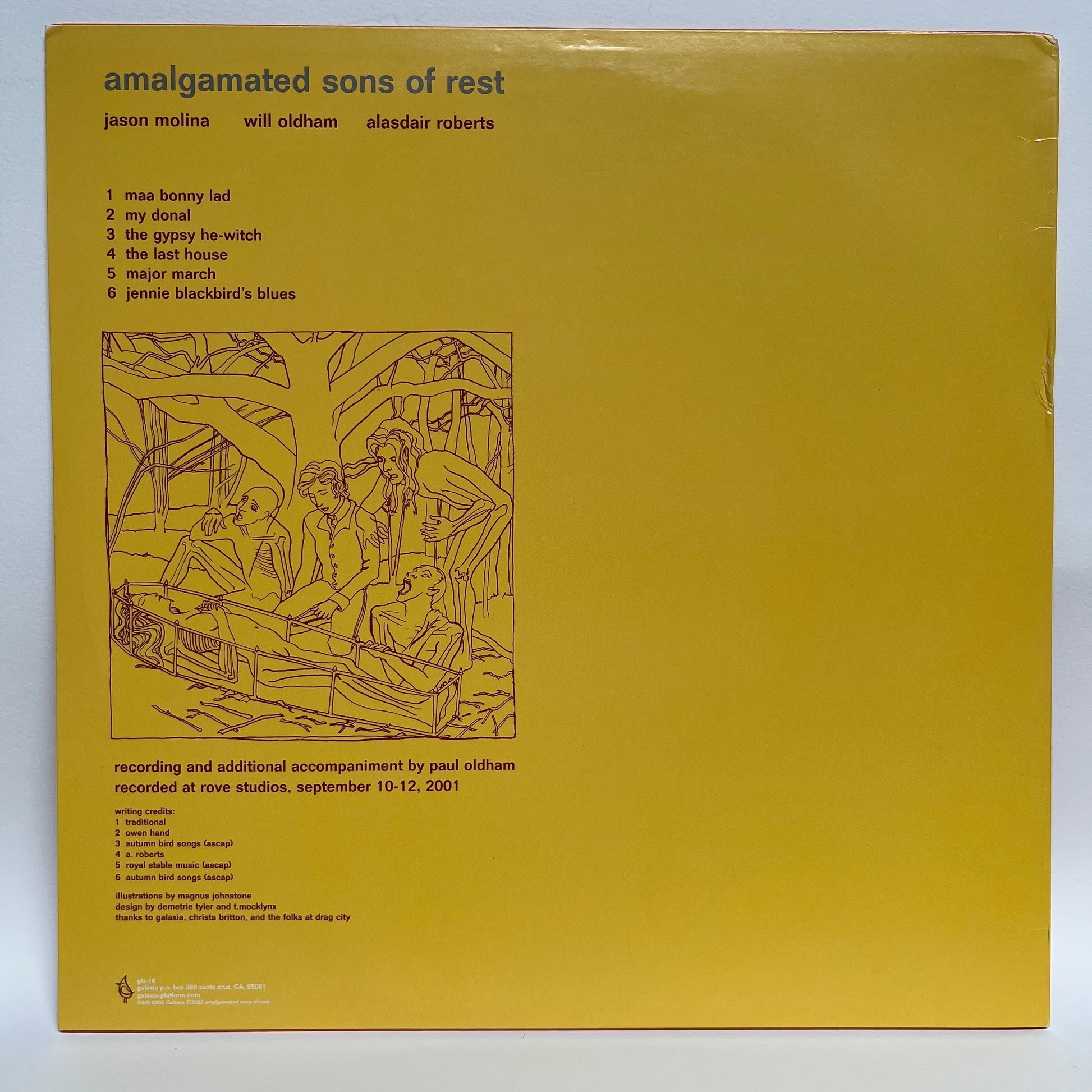 In September 2001, Will Oldham, Jason Molina of Songs: Ohia, and Alasdair Roberts of Appendix Out met up in Louisville to record what would become this EP, a one-off project called Amalgamated Sons of Rest. Given the core trio of forlorn voices involved, this seven-song (including a bonus cut) album sounds like about what you'd expect: dark, wistful, and sparse. A general format is followed: One singer takes lead vocals and the other two add backup. The instrumentation is mostly acoustic, with drums and piano making brief appearances. Roberts starts things off with a reading of the traditional "Maa Bonny Lad." Oldham follows with an almost spoken-word interpretation of the whaling ballad "My Donal," while Molina completes the circle with his own brooding tale, "The Gypsy He-Witch." Roberts' "The Last House" and Oldham's "Major March" pass somewhat unnoticed, but the EP ends nicely with Molina's "Jennie Blackbird's Blues." The trio finally jelling, it's the only song that doesn't sound at all tossed off. (The EP ends in earnest with an obligatory-sounding hidden track, "I Will Be Good," which was written by Oldham and sees the trio singing in the round, trading off lead.) While there aren't a lot of surprises here, Amalgamated Sons of Rest is a pleasant enough curiosity for fans of any of these three indie folk standard-bearers. ~ All Music