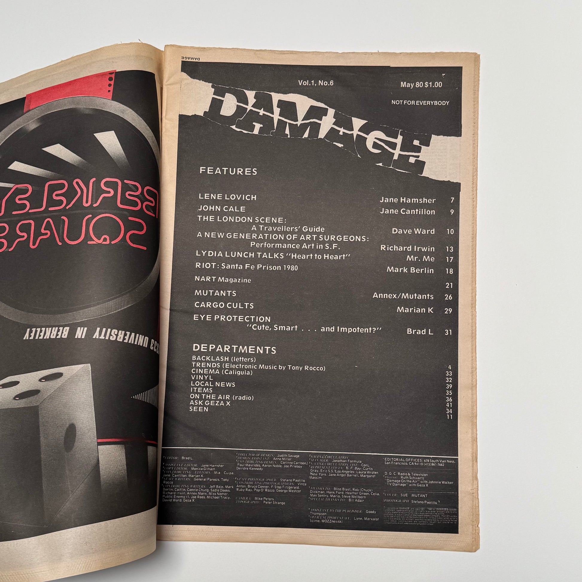 Damage - officially Damage: An Inventory - was a punk fanzine from San Francisco, California. There were 13 issues, from July 1979 to June 1981, appearing roughly every two months. It was printed on 11-1/2 x 17-3/4″ newsprint. Issues were generally 36 to 48 pages long. Its editor was Brad Lapin. Contributors included Jello Biafra, Ginger Coyote, Geza X, and f-stop Fitzgerald. Two of the issues were 28- and 32-page free guides to the Western Front music and art festival in San Francisco for 1979 and 1980.